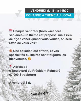 Un thème est proposé, mais il n’est pas exclusif, donc n’hésitez pas à venir partager un moment avec nous n’importe quand !
